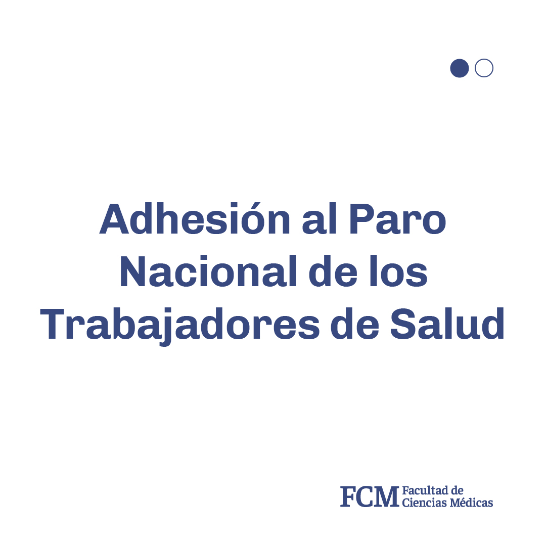 Las autoridades de la Facultad de Ciencias Médicas adhieren al Paro Nacional de Trabajadores de Salud, Paro de Residentes y movilización a realizarse este jueves 17/11/2022 a las 11:30 horas en la Plaza 25 de mayo.