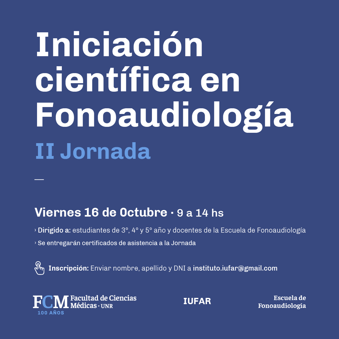 NUEVA FECHA límite de envío de resúmenes: 12 de octubre de 2021 Se invita a participar de las XVIII Jornada de Comunicación Científica de la Escuela de Fonoaudiología Presentación de tesinas, trabajos de investigación y experiencias clínicas en formato póster digital, que serán expuestos en la galería virtual de la Escuela de Fonoaudiología FCM UNR Dirigido a … Leer más