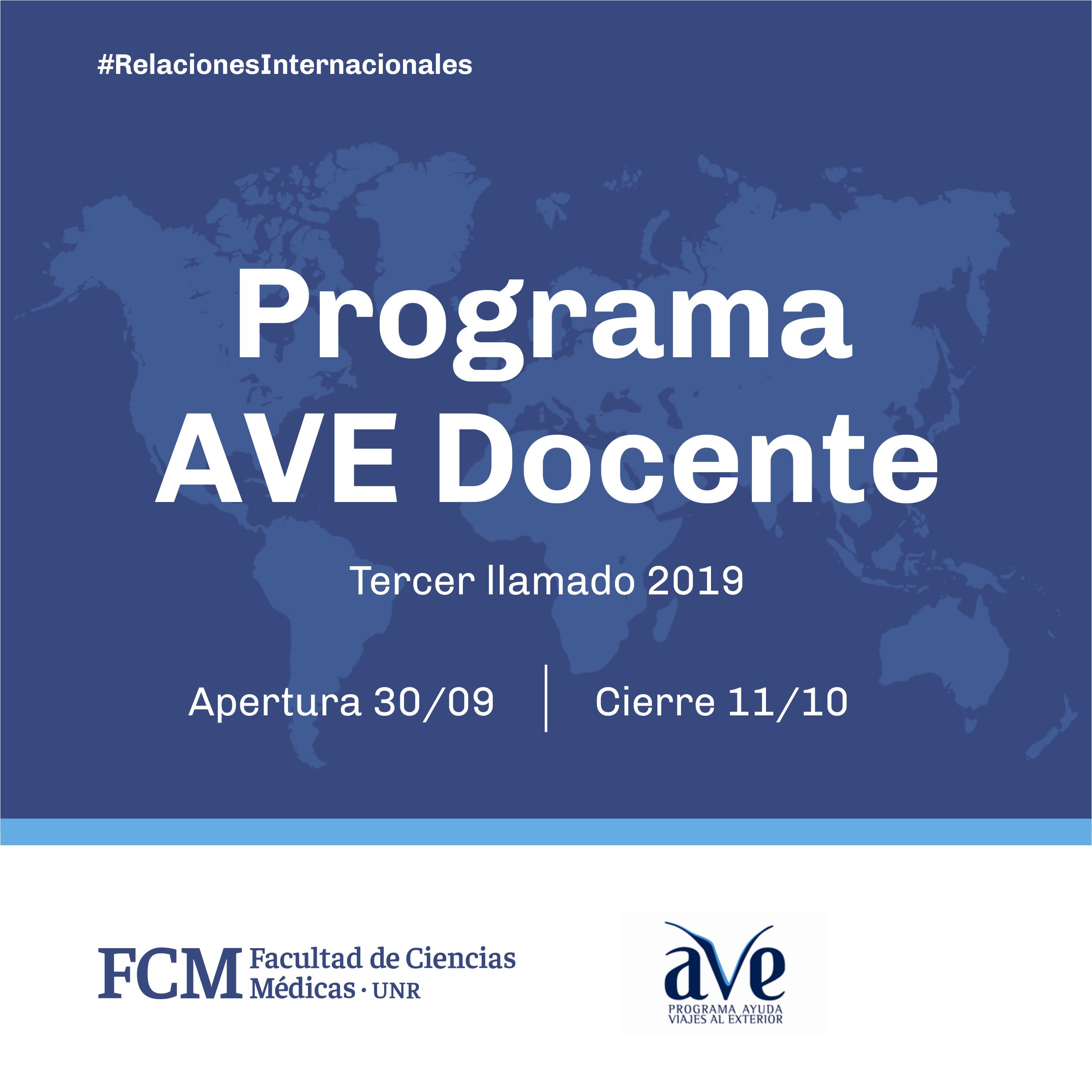 La Secretaría de Relaciones Internacionales de la Facultad de Ciencias Médicas informa que el próximo lunes 30 de septiembre abre la XIII Convocatoria del Programa AVE Docente – Ayuda Viajes al Exterior – destinado a Docentes e Investigadores de la Universidad Nacional de Rosario. El Programa AVE Docente tiene como finalidad asistir en el financiamiento … Leer más