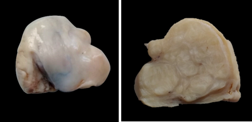 Fig 1: aspecto macroscópico: superficie externa y de corte.