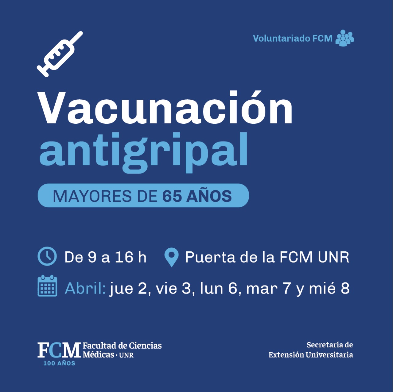 En el marco de la pandemia, la FCM y sus voluntarios, participarán de la Campaña de Vacunacion Antigripal 2020 para personas mayores de 65 años.